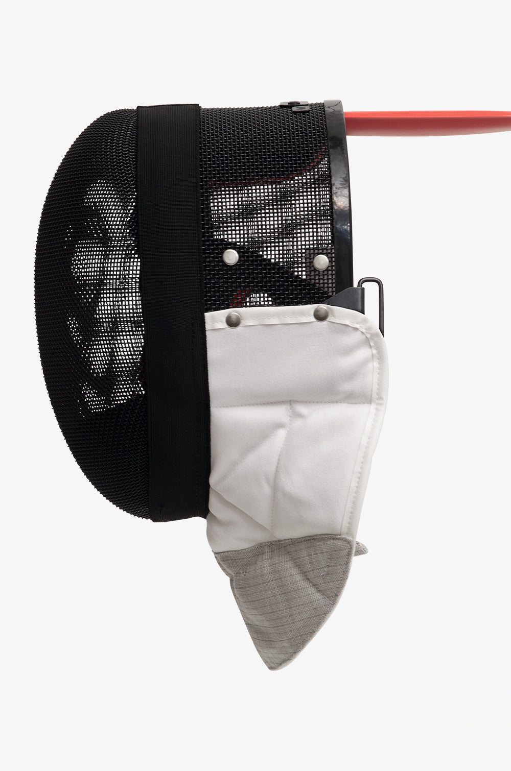 Lorsque vous attachez votre masque d'escrime, assurez-vous que les élastiques à l'arrière sont bien fermés et que l'arceau est plié vers le bas afin qu'il soit bien fixé à votre tête. Par de brusques mouvements de tête, assurez-vous que le masque est bien fixé à votre tête afin qu'il ne tombe pas pendant l'escrime. Si l'un des dispositifs de fixation ne fonctionne plus correctement, le masque ne doit plus être utilisé.