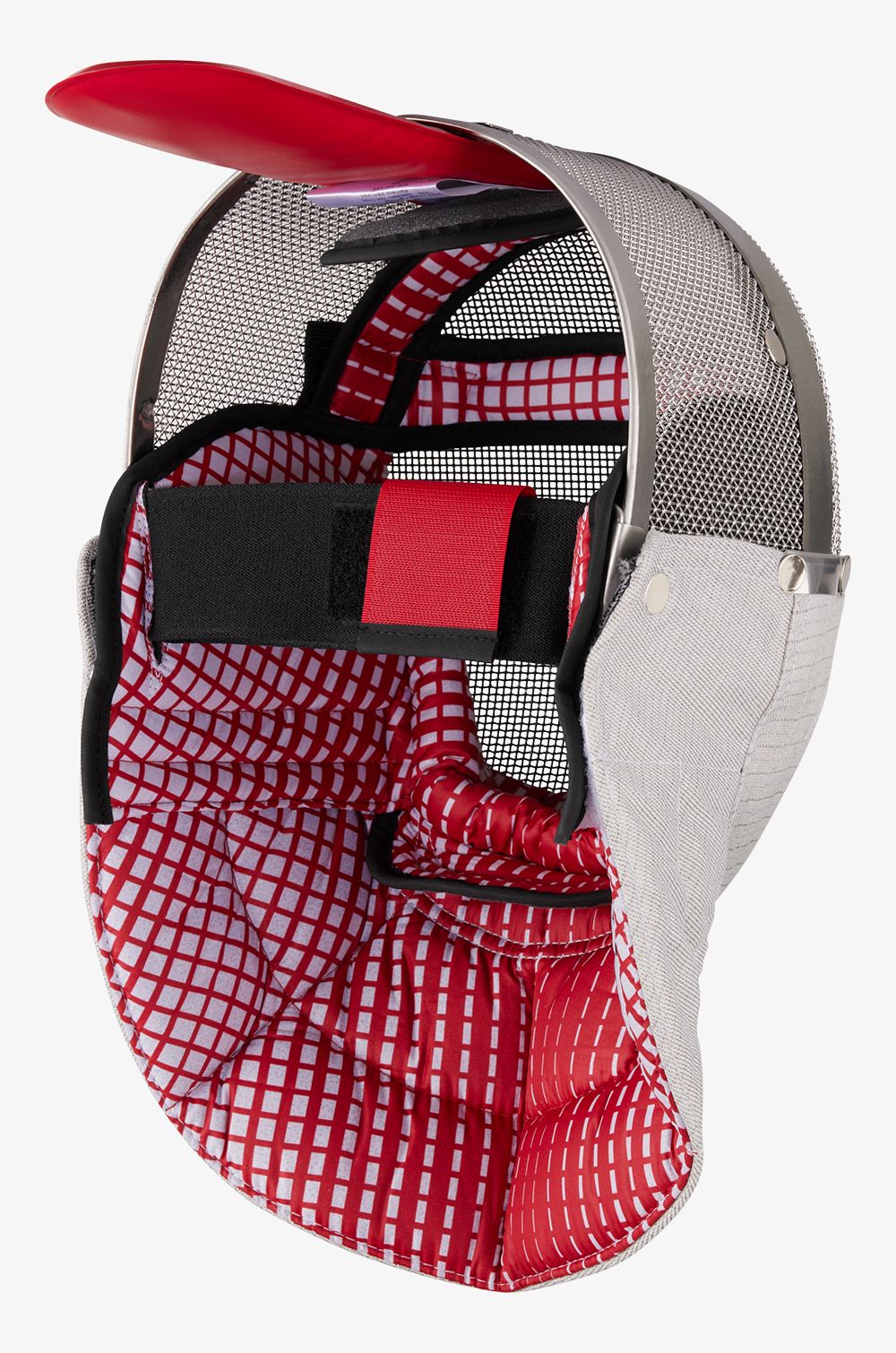 Lorsque vous attachez votre masque d'escrime, assurez-vous que les élastiques à l'arrière sont bien fermés et que l'arceau est plié vers le bas afin qu'il soit bien fixé à votre tête. Par de brusques mouvements de tête, assurez-vous que le masque est bien fixé à votre tête afin qu'il ne tombe pas pendant l'escrime. Si l'un des dispositifs de fixation ne fonctionne plus correctement, le masque ne doit plus être utilisé.